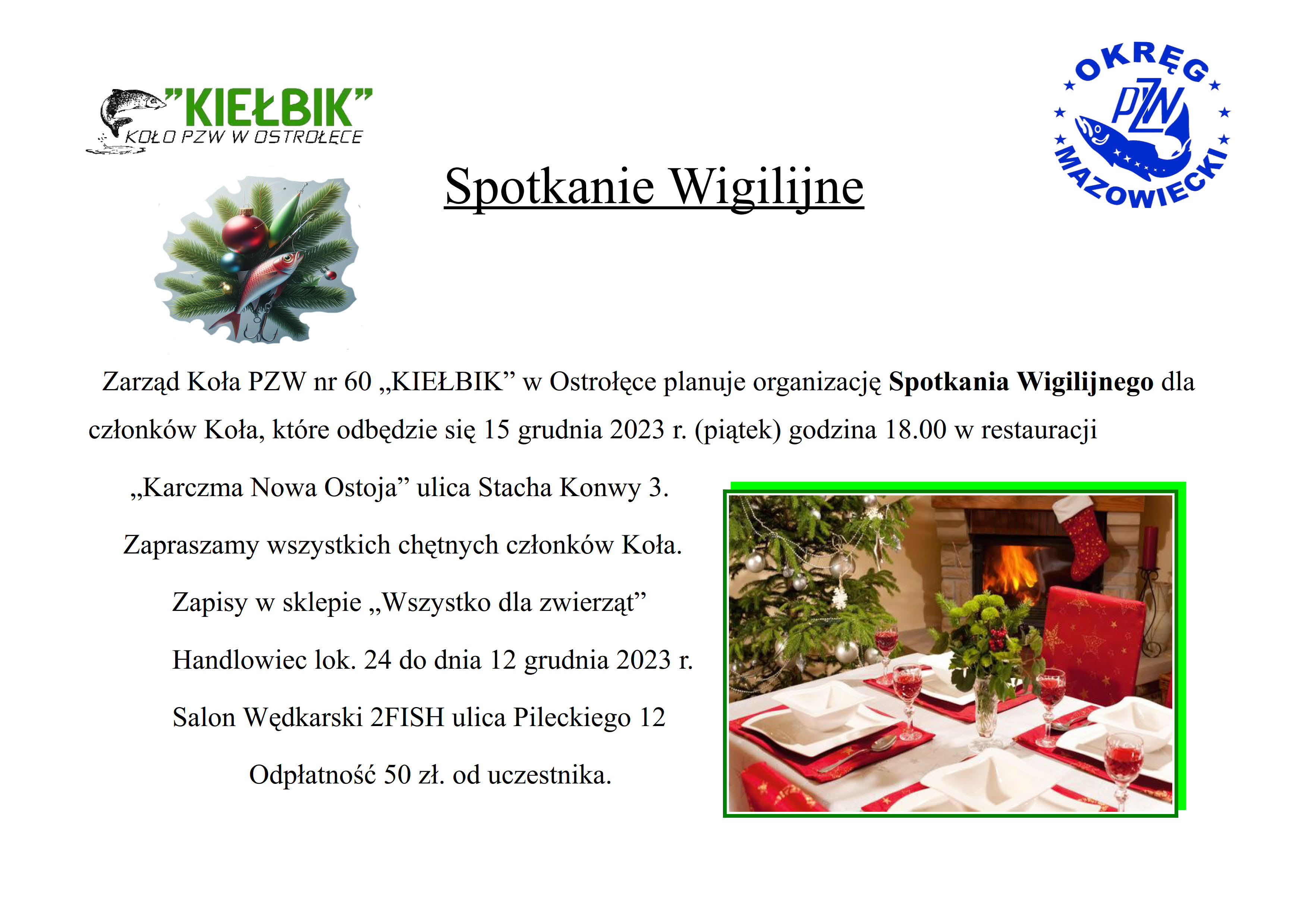 Zaproszenie na spotkanie wigilijne. 15 grudnia 2023 rok.