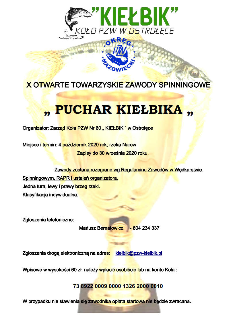 Ze względu na istniejącą sytuację oraz wytyczne Okręgu Mazowieckiego Koło KIEŁBIK w Ostrołęce nie będzie rozgrywało zawodów mistrzowskich w roku 2020.