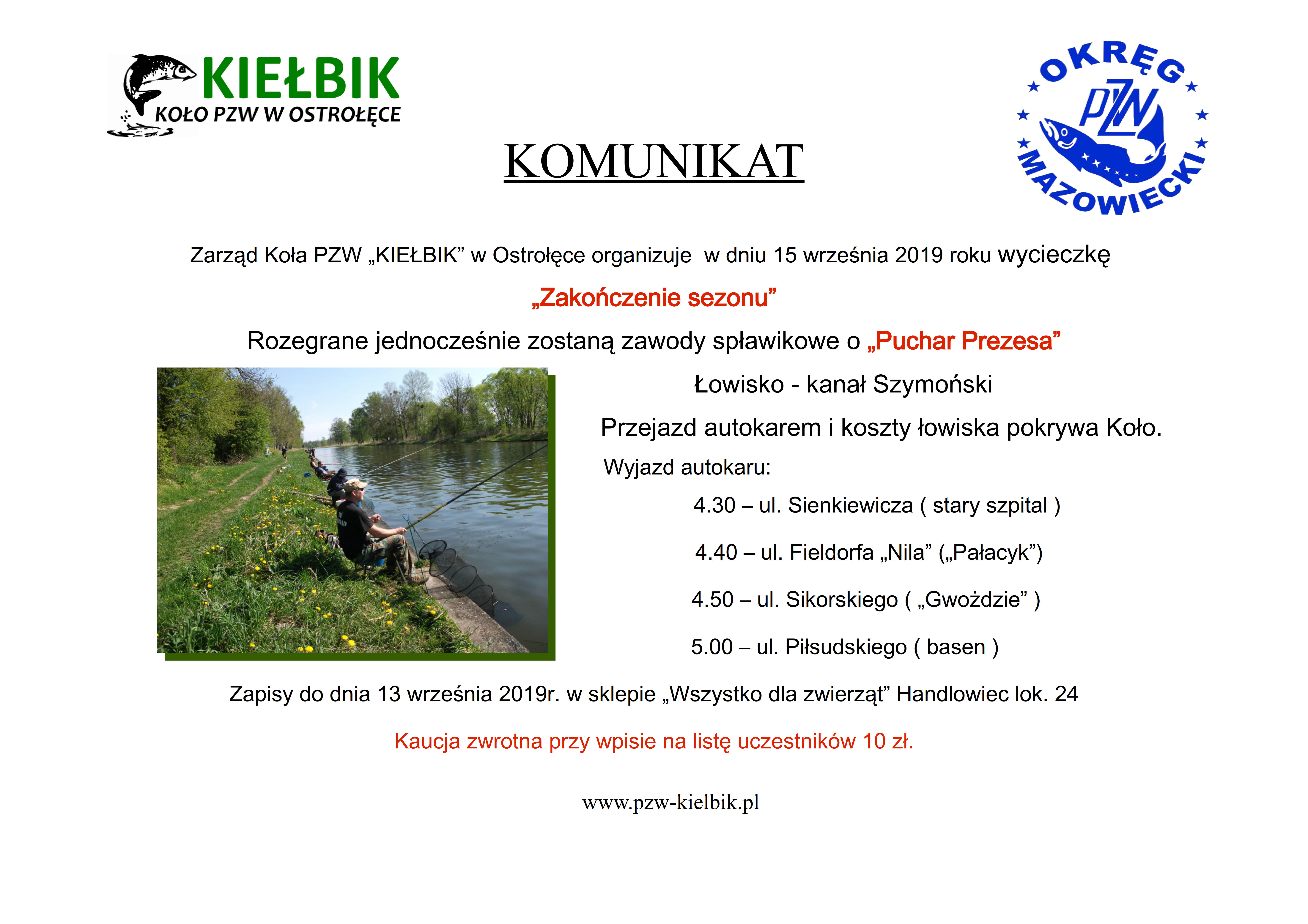 Wycieczka „Zakończenie sezonu” – spławikowe zawody „Puchar Prezesa” 15 wrzesień 2019 r. 29 sierpień 2019 kielbikad01 Kategoria: Ogłoszenia