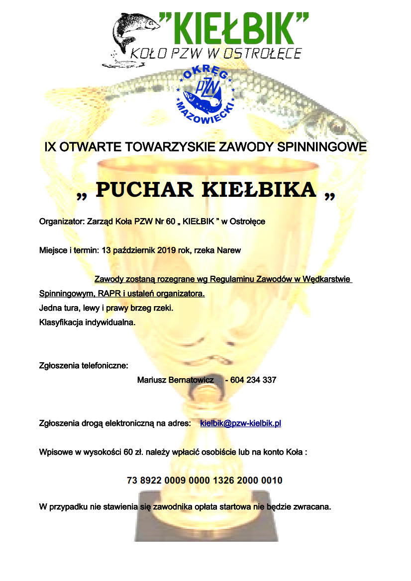 IX Otwarte Towarzyskie Zawody Spinningowe – 13 październik 2019 rok. 26 wrzesień 2019 kielbikad01 Kategoria: Ogłoszenia