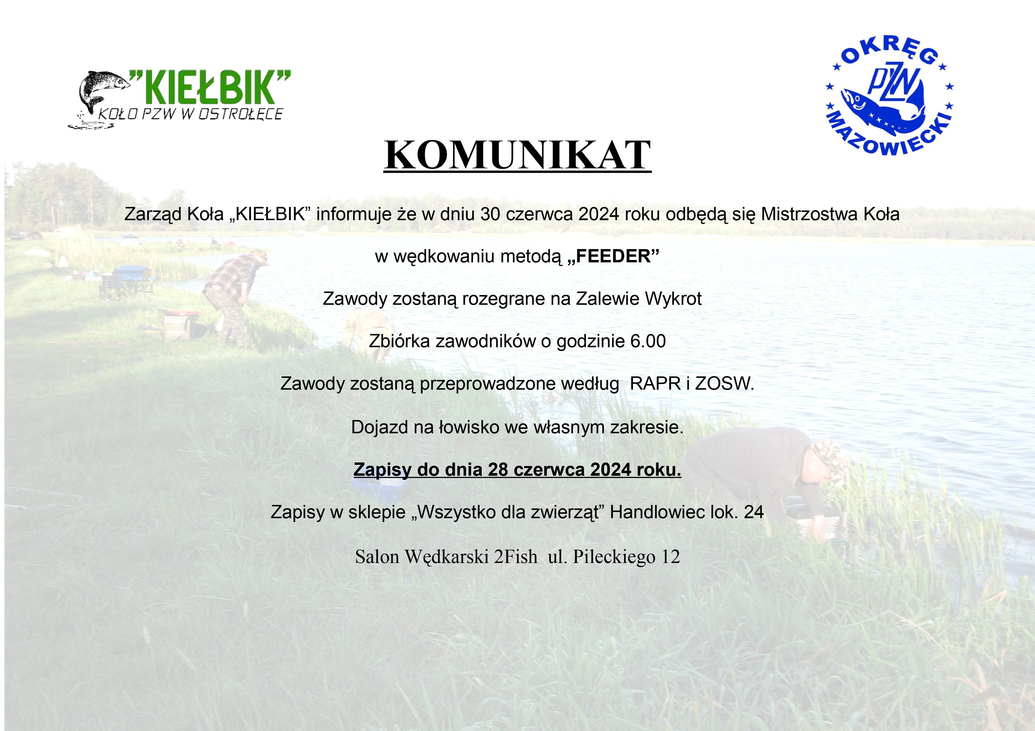 Feederowe Mistrzostwa Koła KIEŁBIK – 30 czerwca 2024 r.