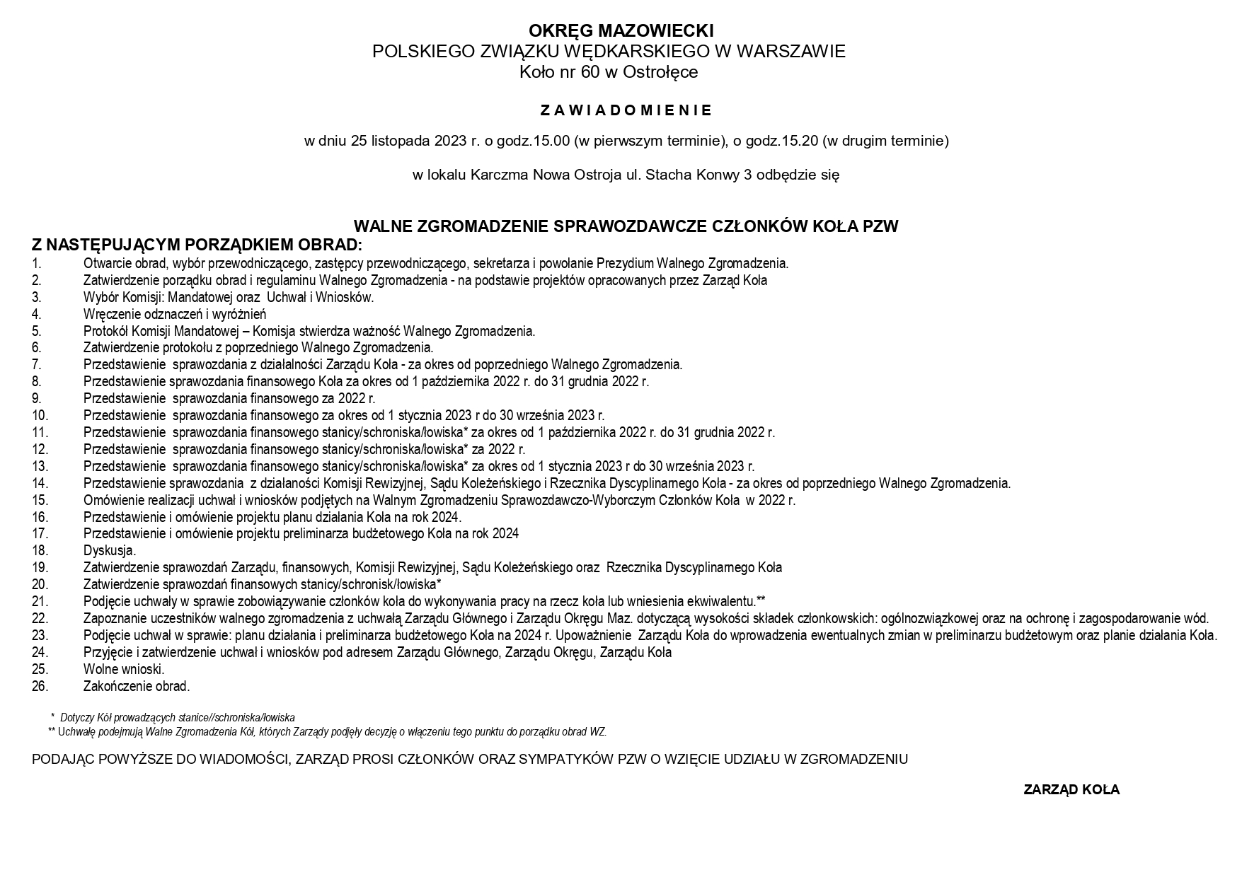 Walne Zgromadzenie Sprawozdawcze Członków Koła PZW KIEŁBIK w Ostrołęce – 25 listopada 2023 r.