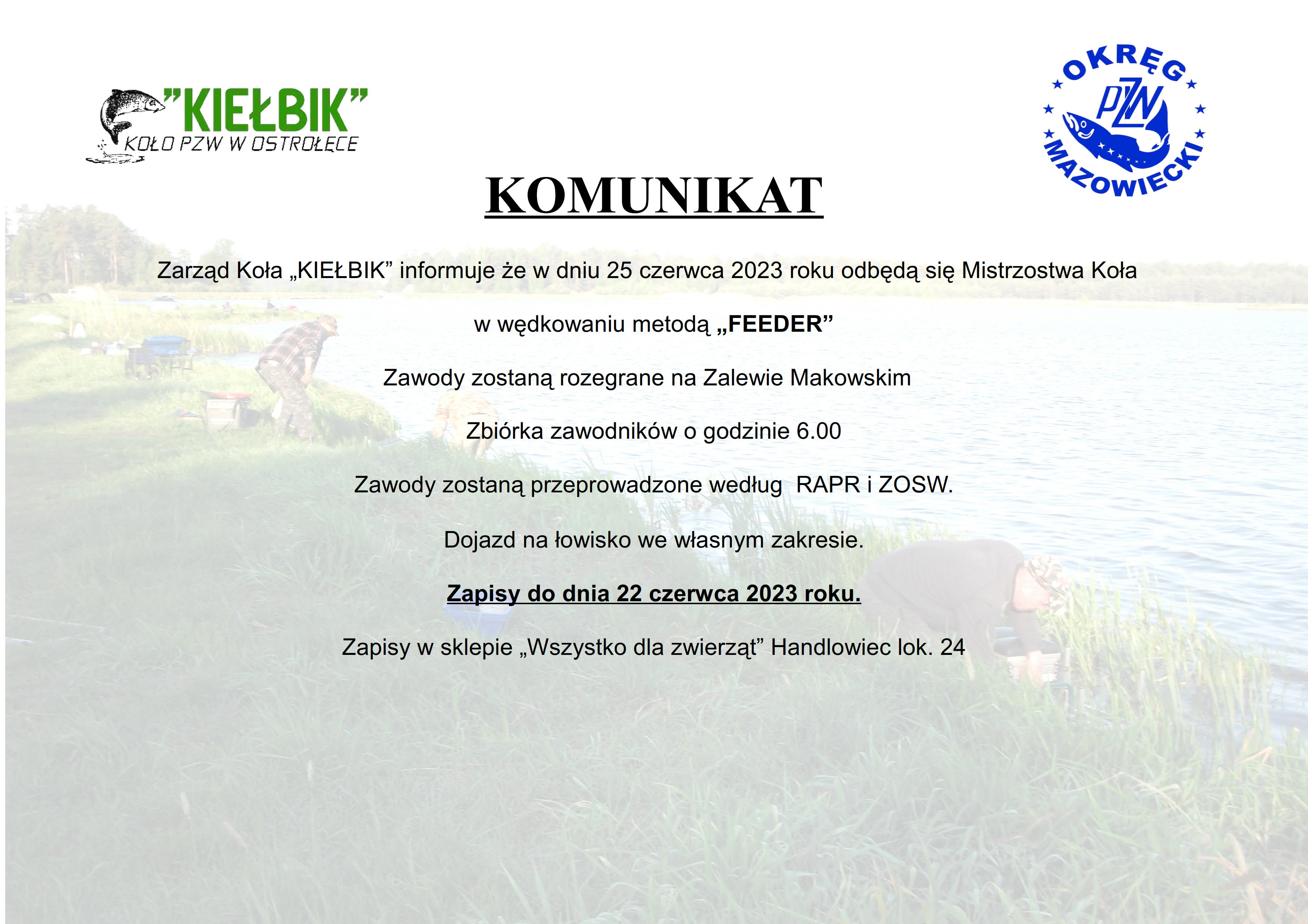 Mistrzostwa Koła KIEŁBIK w wędkowaniu metodą FEEDER – 25 czerwca 2023 rok. 26 maj 2023 kielbikad01 Kategoria: Ogłoszenia