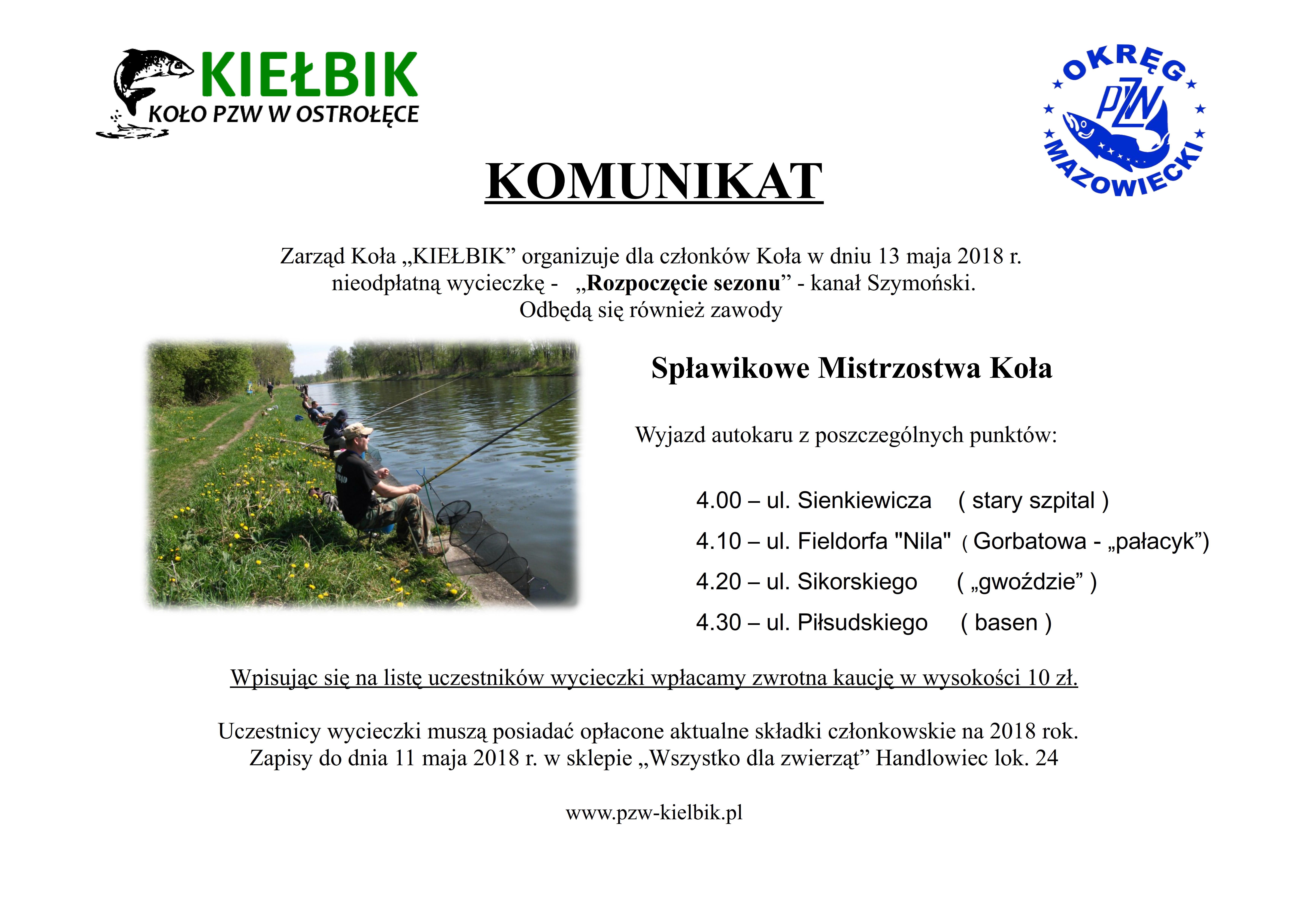 „Rozpoczęcie sezonu” – kanał Szymoński – 13 maja 2018 r. 24 kwiecień 2018 kielbikad01 Kategoria: Ogłoszenia