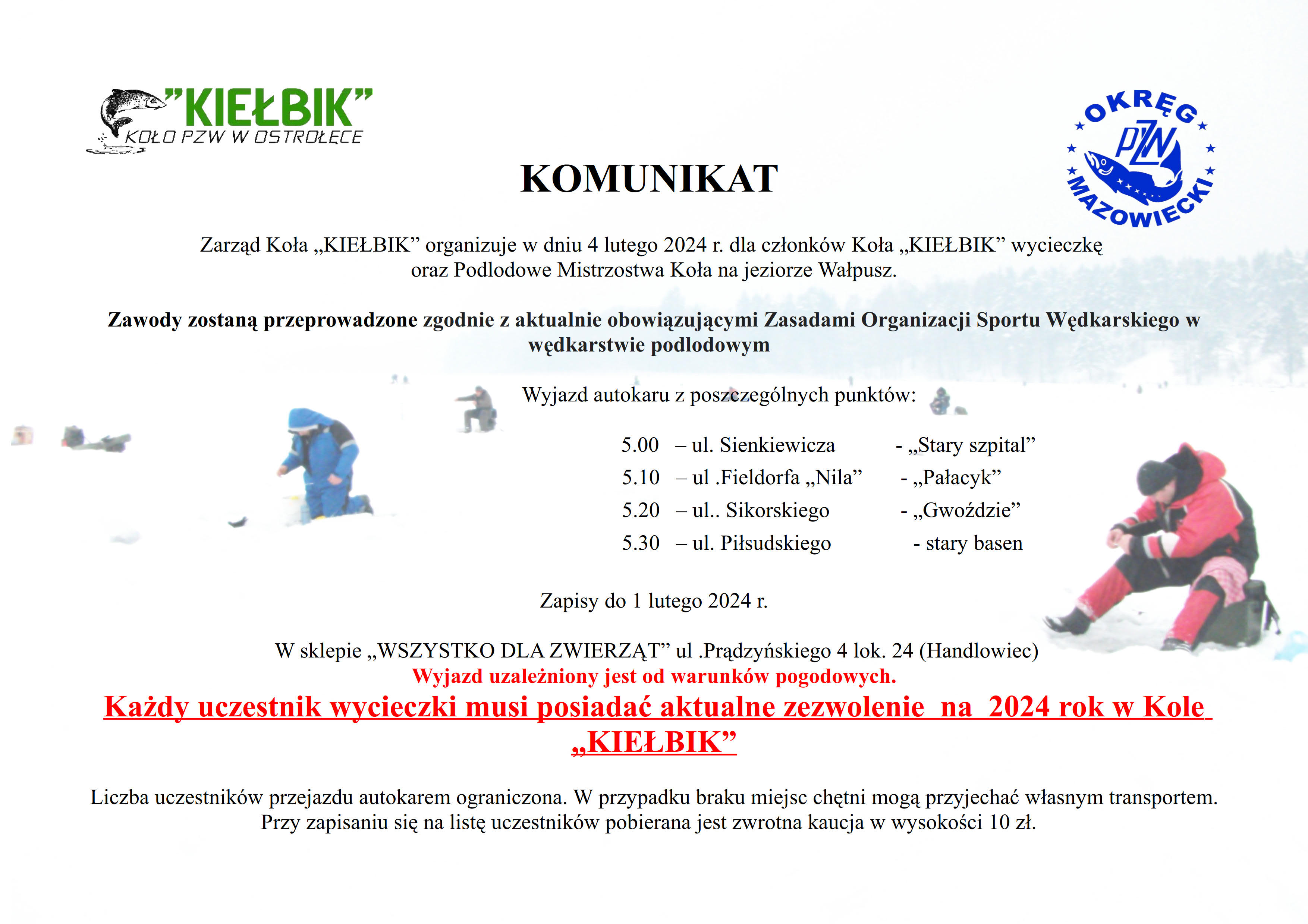 Podlodowe Mistrzostwa Koła 4 luty 2024 rok jezioro Wałpusz. 20 styczeń 2024 kielbikad01 Kategoria: Aktualności