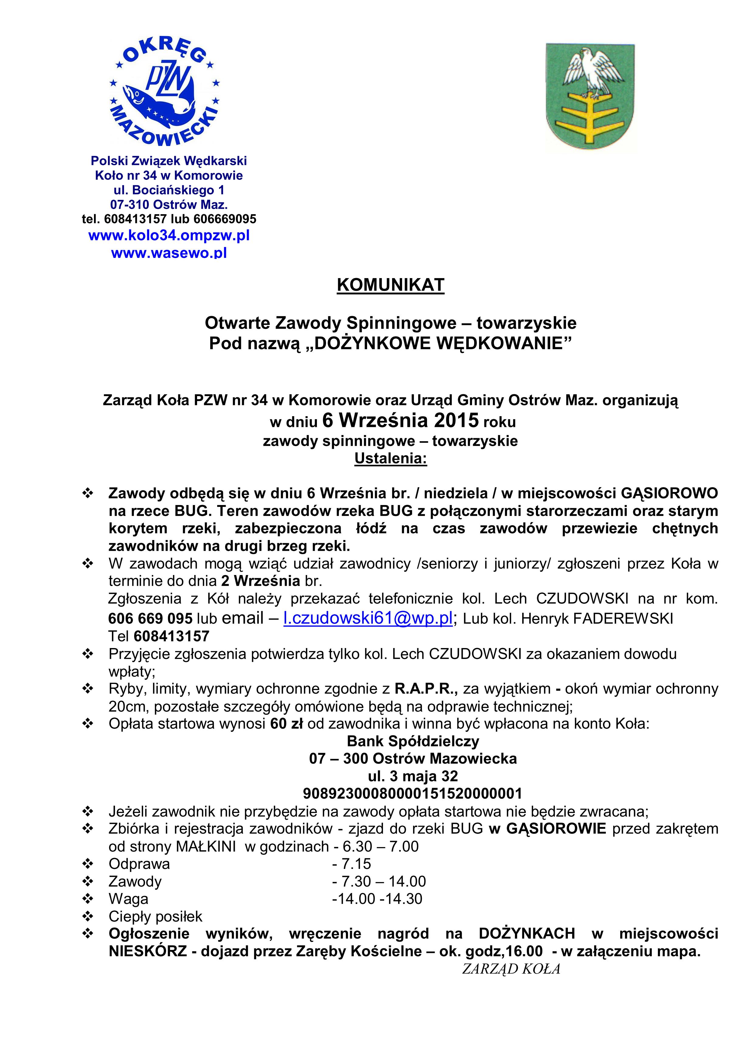„DOŻYNKOWE WĘDKOWANIE” – 6 Września 2015 roku